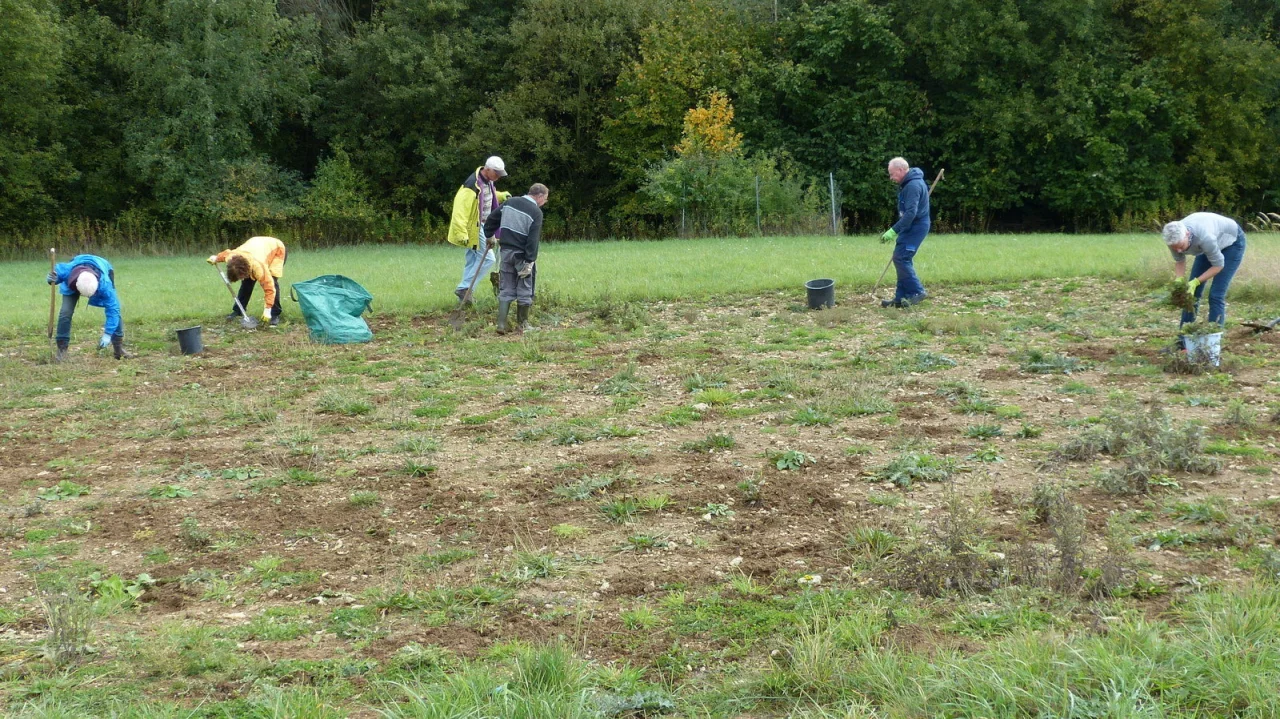 Bislang wurde dort ein Wiesengewässer ausgebaggert, eine Streuobstwiese angelegt, es wurden Baumstubben aufgeschüttet, Steinriegel angehäuft und Gehölzstreifen und Gehölzinseln gepflanzt. Die Konsequenz: Das Blühangebot konnte auf den so entstandenen Rohbodenflächen deutlich erhöht werden.
