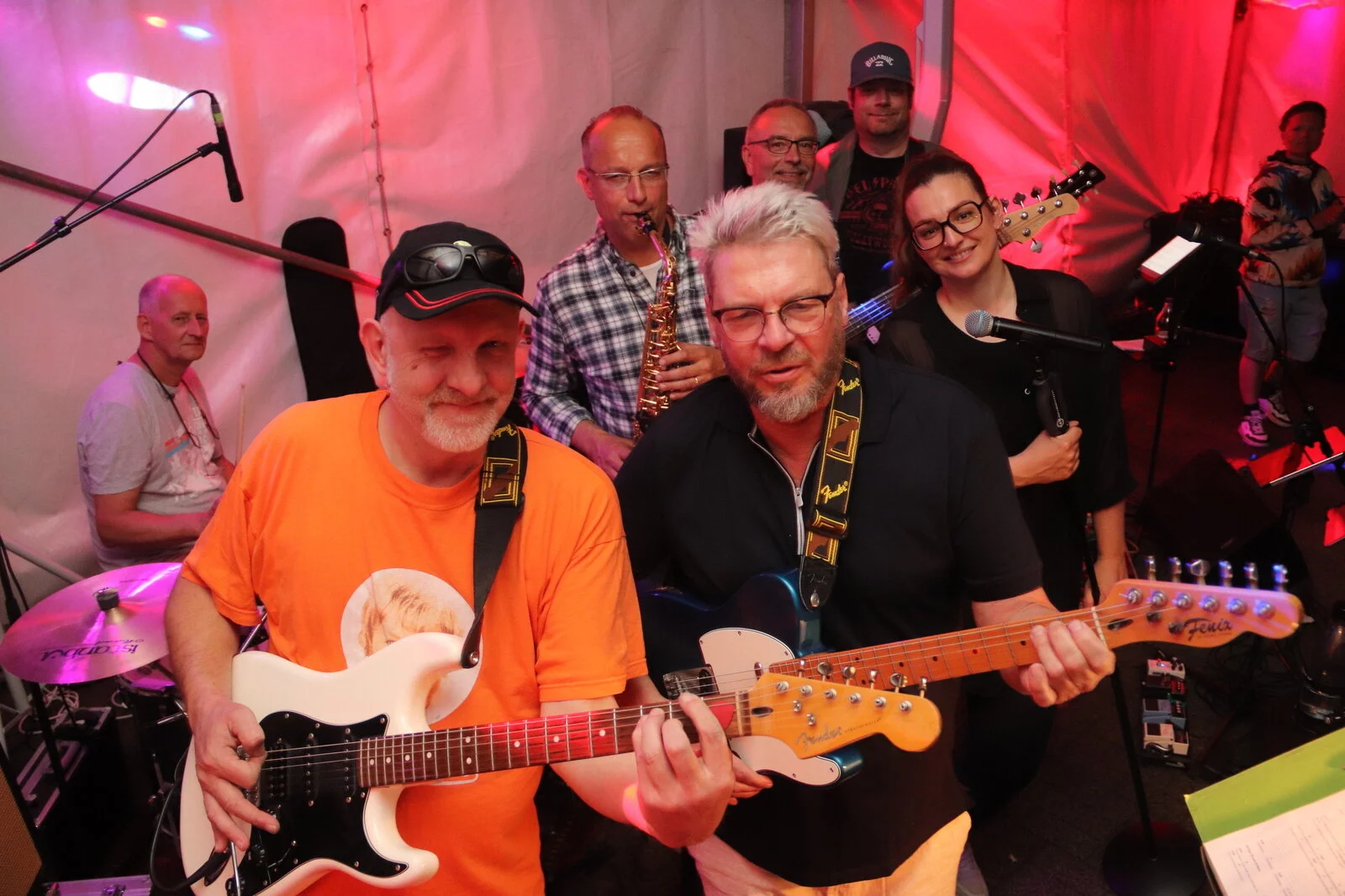 Der warme Abend und erst recht die Musiker sorgten für eine gelöste Stimmung. Was als Begrüßung des Frühlings gedacht war, entwickelte sich im Hinblick auf die Temperatur eher zu einer Sommerparty. Mit der Auswahl von Rock- und Popklassikern aus den Siebzigern und Achtzigern traf die Band genau den Geschmack des Oerlinghauser Publikums. Es waren vornehmlich schnelle Coverversionen von Highlights wie „Lady Marmalade“ und „Gimme some lovin“. Auch „Brown Sugar“ und „Listen to the Music“ gehörten dazu, etliche Gäste sangen die Texte mit, andere begannen schon nach kurzer Zeit zu tanzen.