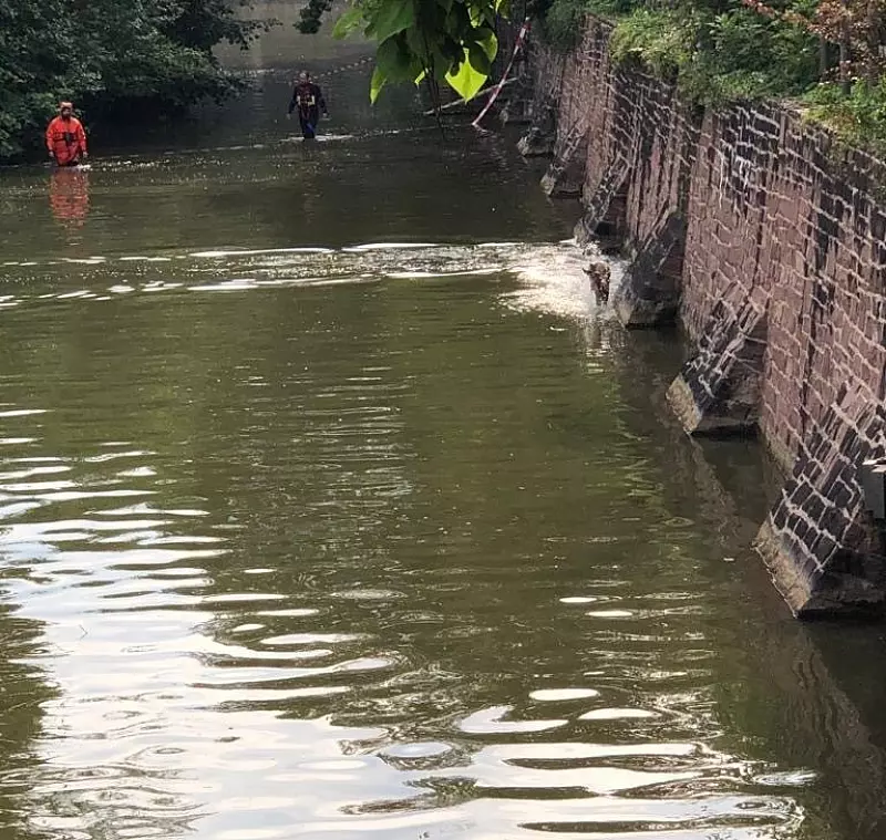Das Hochwasserboot wurde mit Hilfe der Drehleiter zu Wasser gelassen, schon wenig später konnte das Reh aus seiner misslichen Lage befreit und dem Jagdpächter übergeben werden.