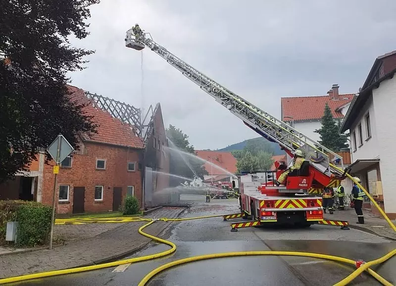 Lügde. Am Samstag wurde die Feuerwehr Lügde gegen 15 Uhr in die Untere Dorfstraße gerufen. Beim Abbrennen von Unkraut hatte eine nebenstehende Scheune Feuer gefangen, als die ersten Einsatzkräfte an der Einsatzstelle ankamen, stand die Scheune bereits im Vollbrand. Atemschutztrupps bekämpften das Feuer im Außenangriff mit 7 Strahlrohren, hierdurch konnte das angrenzende Wohnhaus gerettet werden. Zusätzlich wurde über die Drehleiter das Feuer von oben bekämpft. Die Wasserversorgung wurde aus dem Hydrantennetz sowie aus dem nahegelegenen Ilsenbach aufgebaut.