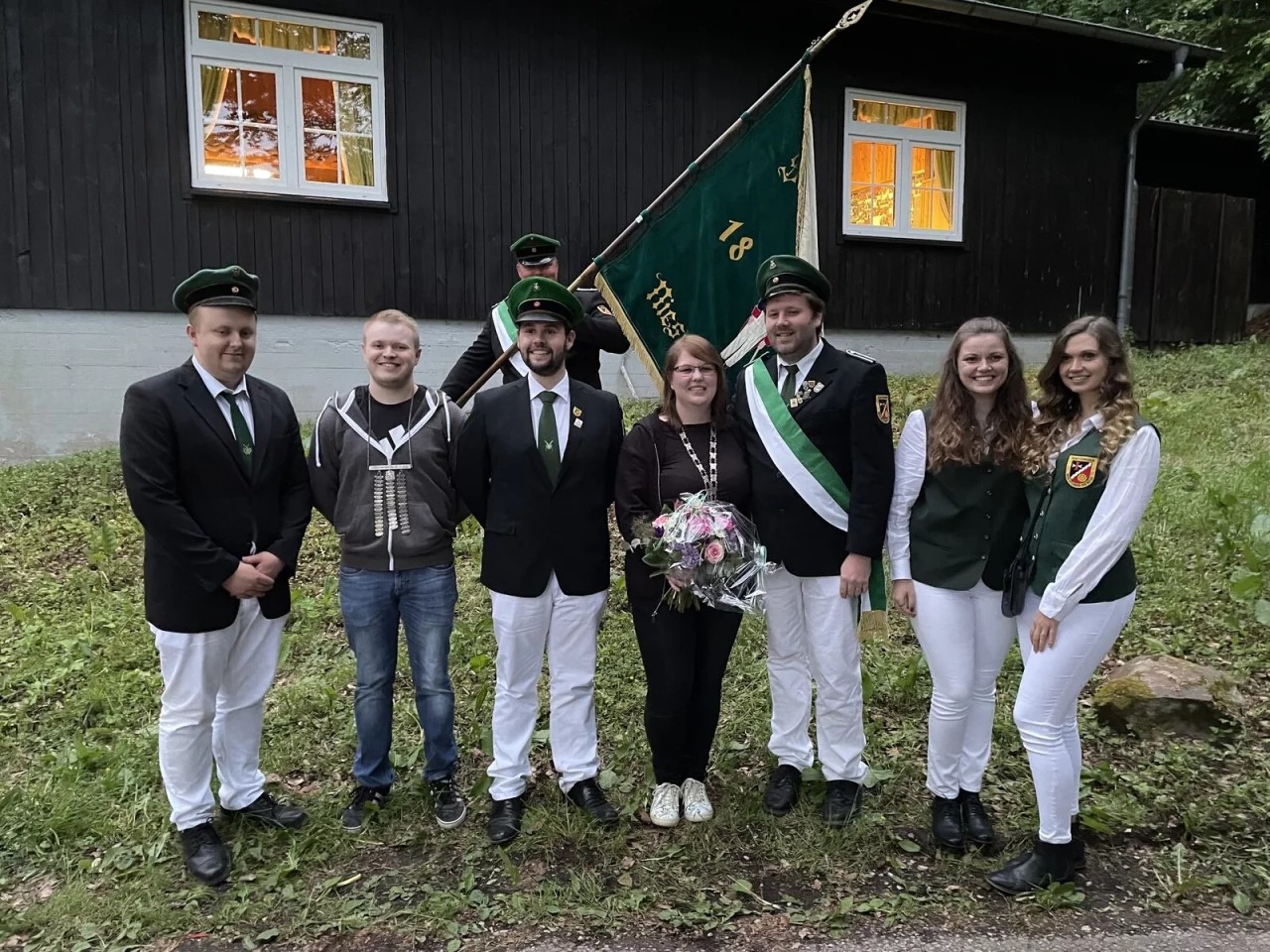Den Hofstaat bilden Gesa Wolf und Anna Eggert. Jungschützenkönig ist Kevin Kamp. Bei der Königin findet ein Umtrunk statt, bevor der große Festumzug startet, der nach der Kranzniederlegung mit dem Zapfenstreich endet. Dann geht es ins Festzelt, wo die Majestäten den Festabend mit ihren Ehrentänzen eröffnen. Ab 20 Uhr spielt die Partyband „Dolce Vita".