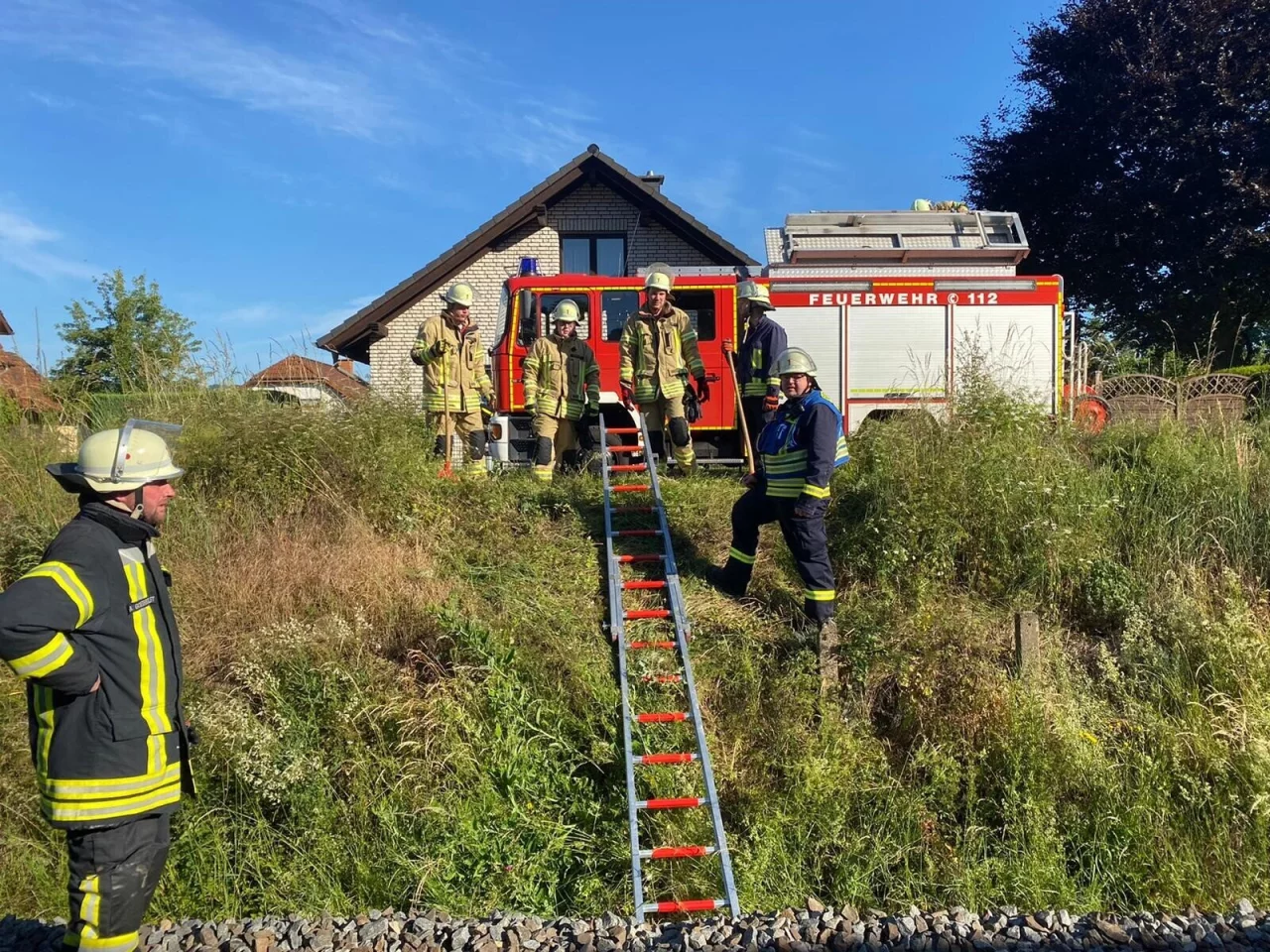 Nach einer kurzen Abstimmung zwischen den Notfallmanagern und der Feuerwehr wurden die Fahrgäste aus dem Zug und anschließend über eine Steckleiter die Böschung hinaufbegleitet. Der ebenfalls alarmierte Rettungsdienst, der Organisatorische Leiter Rettungsdienst und der Leitende Notarzt mussten nicht tätig werden und konnten ihre Einsatzfahrten abbrechen. Die weitere Betreuung wurde durch den Zugbegleiter übernommen. Nach gut einer dreiviertel Stunde war der Einsatz für die Feuerwehr beendet.