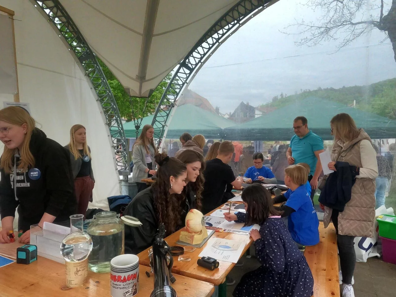 „Beim Kooperationspartner SHWire wurden Schnurtelefone hergestellt und es wurde deren Funktionsweise erklärt. Die ,Großen’ aus der Johannes-Gigas-Schule führten in die Geheimnisse des Fernrohr- und Lochkamerabaus ein und testeten den Geschmackssinn ihrer Probanden: Was schmeckt süßer und wie lässt sich der Geschmackssinn austricksen?“, erklären die Verantwortlichen in der Mitteilung weiter. Dafür habe es bei den Gigas-Schülern nur zwei Flaschen mit Zuckerwasser gebraucht, von denen eine mit ein wenig Salz versetzt gewesen sei. Schon sei der Geschmackssinn irritiert und könne süß und weniger süß nicht mehr sicher unterscheiden. „Beeindruckend“, fanden das die Kinder und Jugendlichen.