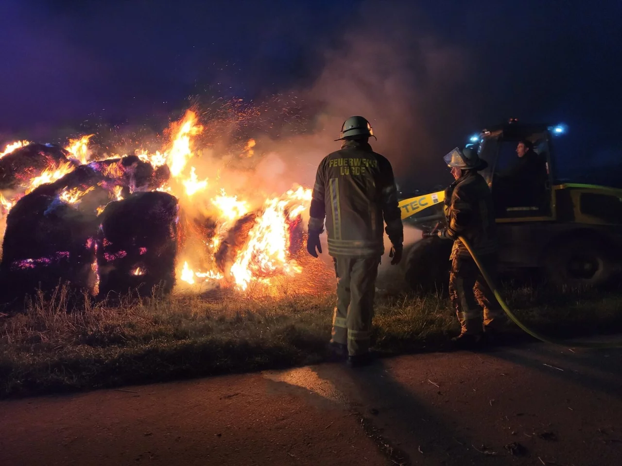 Lügde. Die Alarmierung ließ Schlimmeres befürchten: Auf einem Acker im Grenzgebiet sollten zwischen Lügde und Bad Pyrmont sollten 120 Strohballen brennen. Die Feuerwehr Lügde rückte mit 30 Kräften an. Der Landwirt hatte aber schon einige Ballen abtransportiert. Letztlich verbrannten um die 50 Ballen, schätzt die Feuerwehr. Die Polizei habe die Ermittlungen zur Brandursache aufgenommen. Die Feuerwehr löste die Warn-App „Nina“ aus, die Anwohner in Holzhausen sollen Türen und Fenster geschlossen halten. Der Rauch zieht in Richtung Pyrmont, erklärt der stellvertretende Leiter der Freiwilligen Feuerwehr Lügde, Marco Gröne, auf Nachfrage. Das Feuer habe man im Griff, gegen 19.50 Uhr gehe es um die Nachlöscharbeiten.
