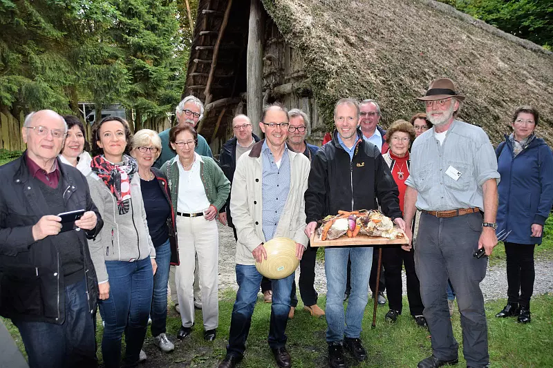 Oerlinghausen. Wie kochte der Oerlinghauser vor etwa 10.000 Jahren seine Mahlzeit? „Er briet das Fleisch seiner Jagdbeute in einer Erdhöhle", erklärt Karl Banghard, Leiter des Archäologischen Freilichtmuseums. Gemeinsam mit den Museumsmitarbeitern hat er den Mitgliedern des Oerlinghauser Lions Clubs nun eine historische Kochshow präsentiert.
