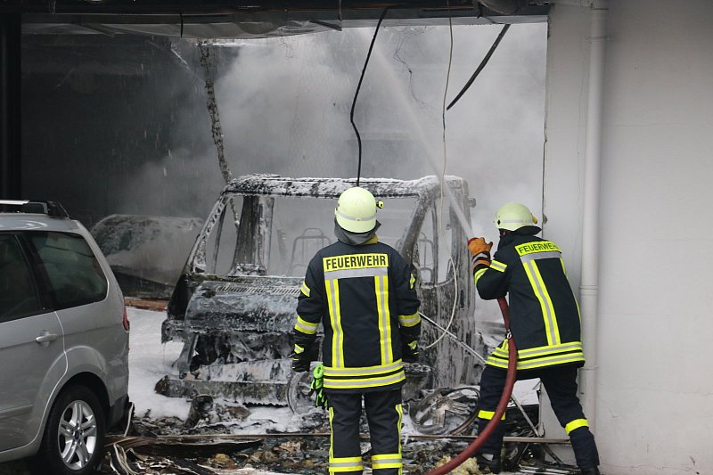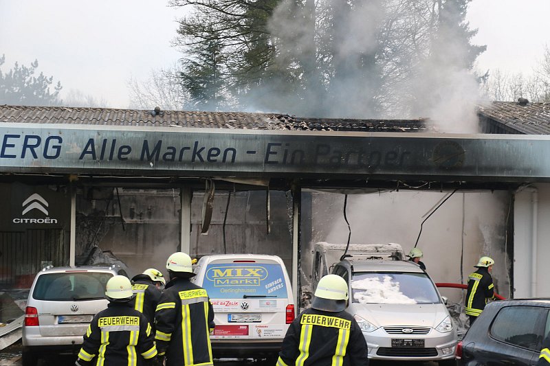 Als am Sonntagmorgen um 8.08 der Alarm durch Nachbarn des Autohauses bei der Feuerwehr eingeht, steht nach Angaben von Katharina Köster, Pressesprecherin der Feuerwehr Oerlinghausen, die gesamte Verkaufsfläche des Autohauses bereits in hellen Flammen. Acht Autos, ein Wohnmobil und zwei Motorräder wurden dabei ein Raub der Flammen.