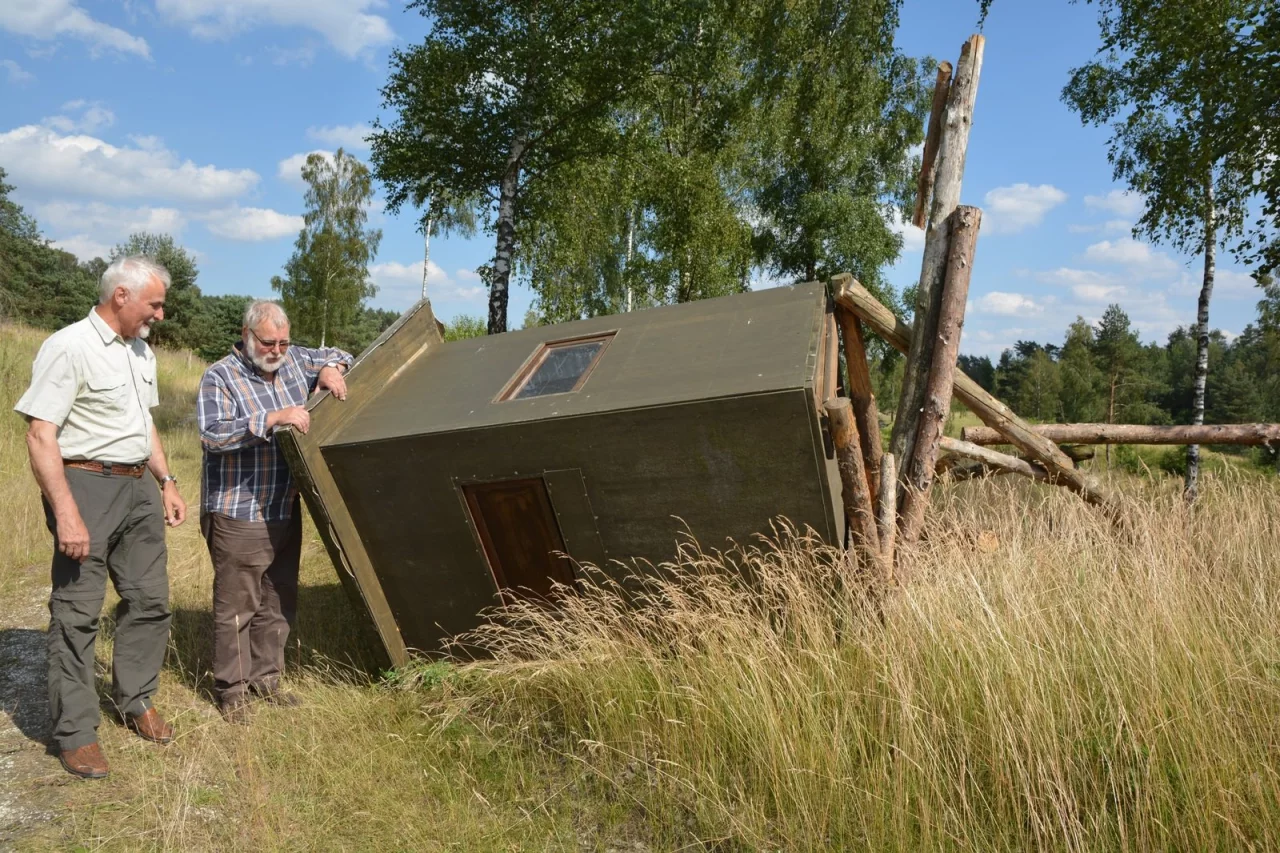Oerlinghausen. Kopfschüttelnd und entsetzt stehen Friedhelm Möller und René Köster im Bereich der Sandgrube Haßler vor ihrem am Boden liegenden Hochsitz. Der Unterbau ist zerschlagen worden, die große Kanzel zu Boden gestürzt. „Ein Stück der Aluleiter ist mit brachialer Gewalt zerstört worden", sagt René Köster.
