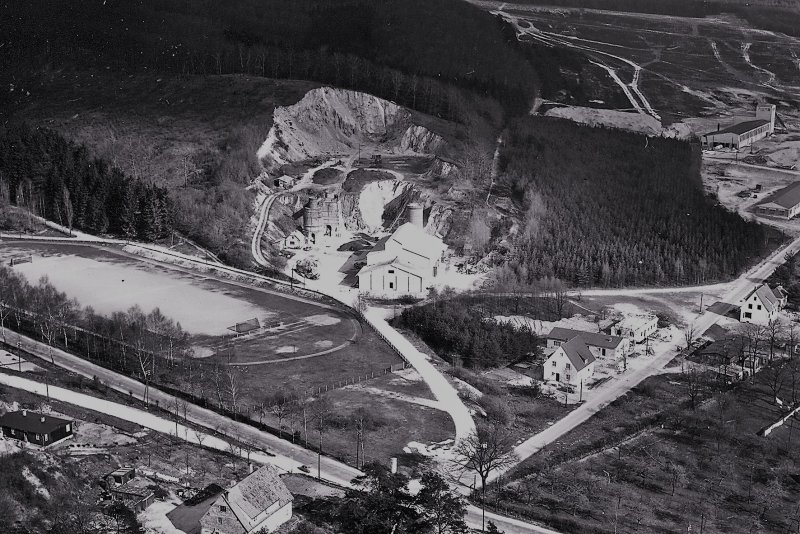 Er flog knapp am Schornstein des neuen Heizkraftwerkes vorbei, schlug eine breite Schneise durch die Fichten des Barkhauser Berges und donnerte mit voller Wucht in das Dach des Kalkwerks am Sportplatz. Hier zerstörte das Riesengeschoss einen großen Teil des Gebäudes und einige Bereiche der Abfüllanlagen.