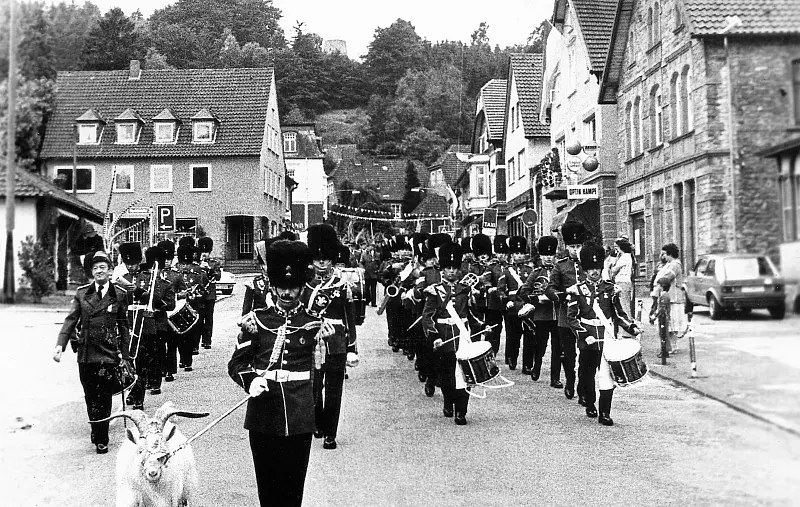 Dass die Beziehungen der englischen Militärs zu Oerlinghausen immer enger wurden, ist nicht zuletzt den Schützen zu verdanken. Immer wieder traten zu Schützenfesten die Militärkapellen der Briten auf – mal mit zackiger Marschmusik beim Umzug, mal beim Konzert am Sonntagmorgen im Weber-Park. Sogar die englische Generalität marschierte gelegentlich mit beim Festumzug durch die Stadt, vornweg mit Bürgermeister und Stadtdirektor. Und letztlich gab es britische Soldaten, die Oerlinghausen als Wohnort so sympathisch fanden, dass sie sich nach ihrem Militärdienst ganz in der Bergstadt niederließen– so wie der frühere britische Kapellmeister David Clarke, der heute eine Musikschule betreibt und eine feste Größe im musikalischen Leben der Bergstadt geworden ist.