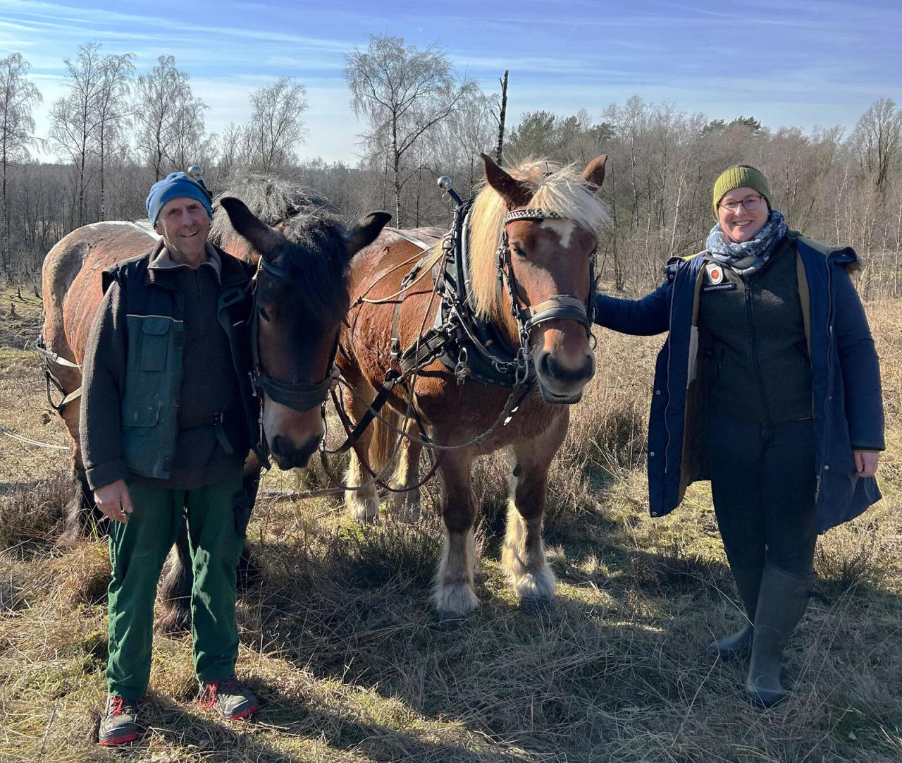 Kreisförsterin Vanessa Rothkegel weiß, warum: „Das machen hier die Pferde, weil wir hier eine sehr befahrungssensible Heide haben, die wir gerne schonen möchten. Die Pferde richten da weniger Schaden an als die Maschinen“, sagt sie. Häufig kommen Tiere bei solchen Maßnahmen nicht mehr zum Einsatz. „Es gibt nicht mehr viele Forstunternehmer, die professionell mit Pferden arbeiten, aber der Kreis hat sich hier zugunsten des Naturschutzes dazu entschieden, die Pferde einzusetzen“, ergänzt sie.