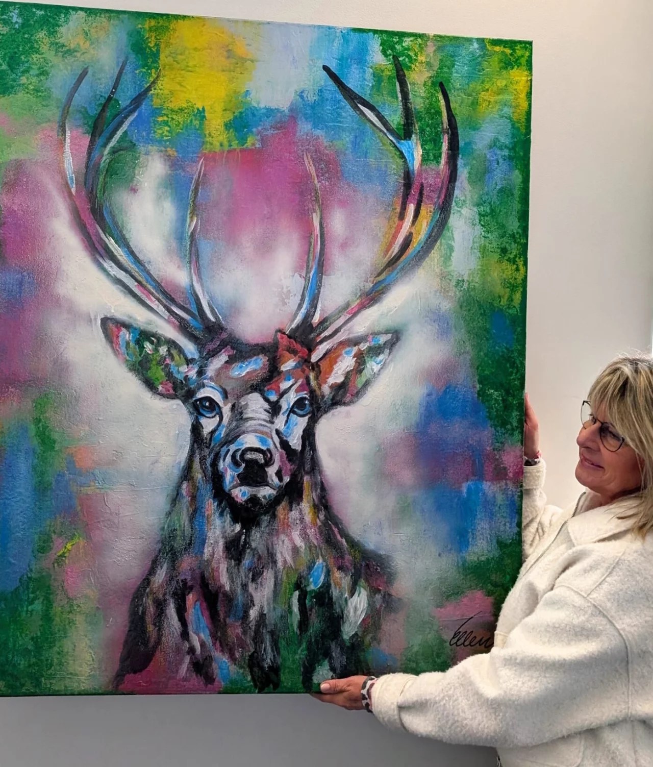 Ein besonderes Geschenk zum einjährigen Bestehen gab es von der Lagenser Künstlerin Ellen Rethemeier: Sie stiftete zwei Arbeiten, die sie eigens für das Gesundheitszentrum gemalt hat. „Kunst kann mehr als nur schmücken. Sie kann inspirieren, motivieren und sogar das Wohlbefinden steigern“, erklärte die Künstlerin. Insbesondere in Krankenhäusern und Gesundheitseinrichtungen spielten Farben eine essenzielle Rolle. Sie könnten Stress und Angst reduzieren und eine angenehme Umgebung für Patienten und Mitarbeiter schaffen.