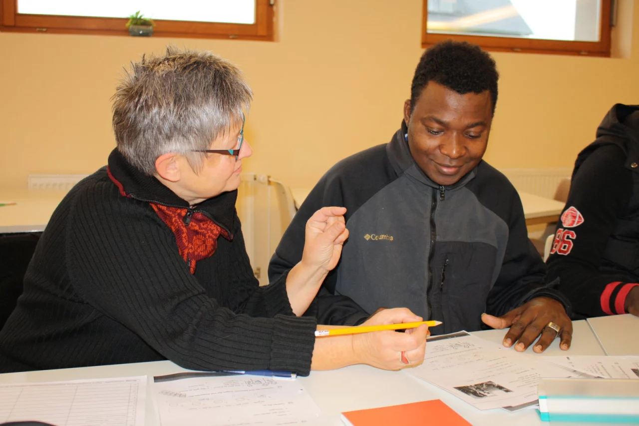 „Heute sind es noch einige mehr als beim letzten Mal“, stellt Martina Rudolphi fest, die zu der freiwilligen Projektgruppe gehört. Es seien aber noch nicht alle. Die Blicke der Anwesenden sind auf Dozent Jan Mundhenk von der Volkshochschule Lippe-Ost gerichtet. Er schreibt gerade die Zahlen an eine Tafel, die leider von einem Stützpfeiler halb verdeckt wird. Einige setzen sich deshalb kurzerhand zum Abschreiben direkt vor die Tafel. Einer von ihnen ist der 25-jährige Syrer Hashem Abazid, der seit sieben Monaten in Deutschland lebt. Halb auf Englisch, halb auf Deutsch gibt er zu verstehen, dass er den Kursus gut finde und in Deutschland bleiben möchte.
