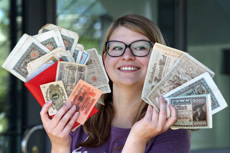 So wie bei Freya Köhring, die eigentlich nur ein Buch gesucht hatte. Ein alter Schrank in dem kleinen Zimmer auf dem Speicher weckte ihr Interesse. „Ich musste einfach einen Blick hinein werfen." Die Scharniere sind ganz rostig. Innen hängen Jacken und Kleider, die muffig riechen, und es staubt ein wenig. „Doch da lag auch dieses kleine Mäppchen mit ganz vielen Geldscheinen, die ich mir genauer ansehen musste", erzählt sie.