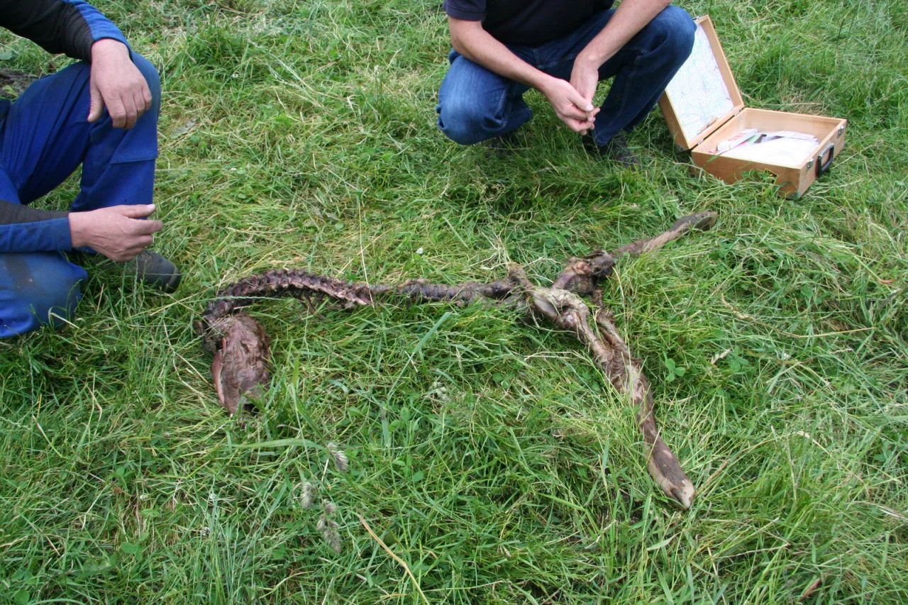 Weil es den Verdacht auf einen Wolfsangriff gab, sicherten Wolfsberater Thomas Pusch und Dieter Wortmeier vor Ort Spuren. Der Kadaver des zuerst aufgefundenen Kalbes wurde im Chemischen und Veterinäruntersuchungsamt Ostwestfalen-Lippe (CVUA-OWL) in Detmold pathologisch untersucht.