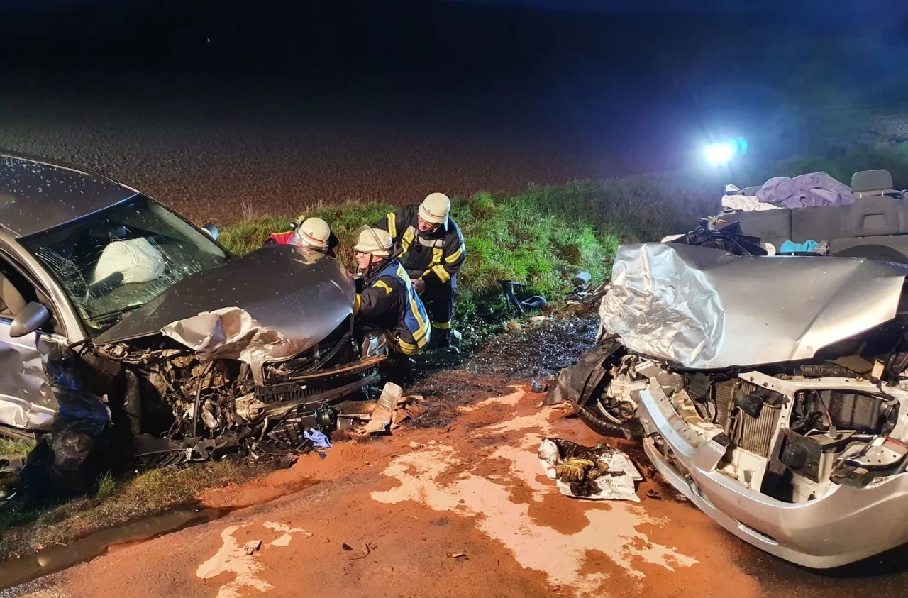 Die Fahrzeuge kollidierten frontal, prallten noch gegen den LKW und blieben total zerstört auf der Straße und im Straßengraben liegen, teilt die Polizei in einer Pressemitteilung mit. Sowohl der 45-jährige Vater, als auch die 43-jährige Mutter wurden schwer verletzt. Letztere musste von der Feuerwehr aus dem Auto befreit werden. Die Kinder, 21 und 5 Jahre alt, wurden leicht verletzt. Auch der 20-jährige Unfallverursacher kam mit leichten Verletzungen davon.