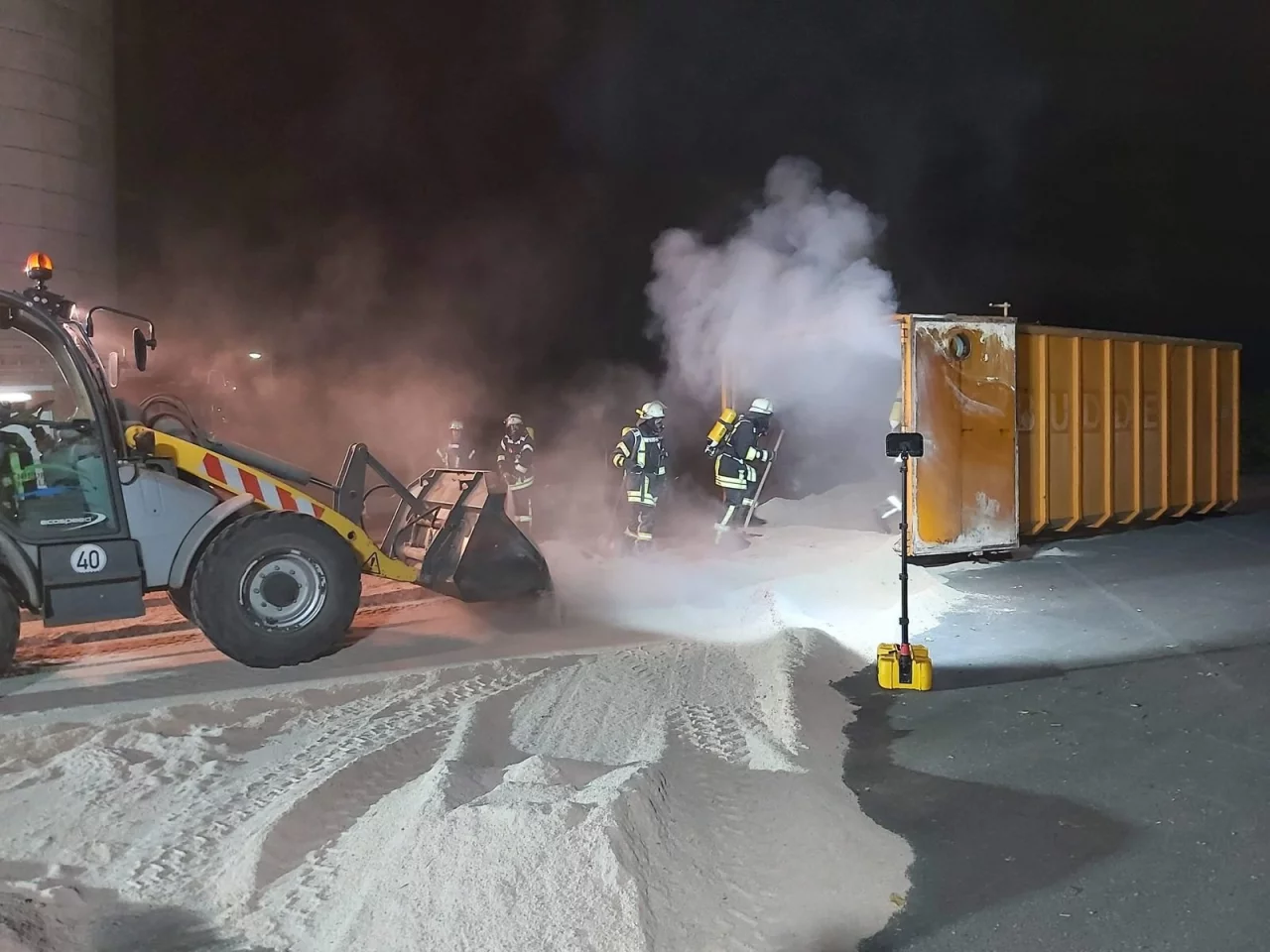 Mittels Wärmebildkamera wurden weitere Brandnester in der Absaug- und Filteranlage sowie im Sammelcontainer sowie ein Kabelbrand entdeckt. Der Containers wurde auf dem Firmenparkplatz entleert, die Späne verteilt und gewässert. Im Einsatz war auch der Atemschutzcontainer des Kreises. Nach etwa vier Stunden war der Einsatz beendet , die Einsatzstelle wurde den Verantwortlichen übergeben.
