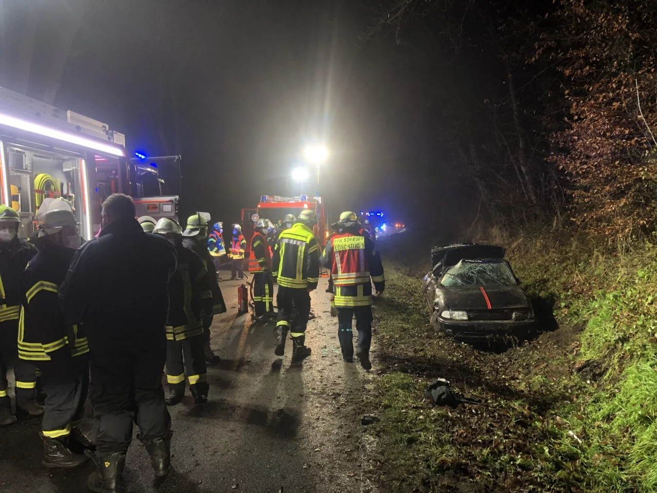 Während die 16- und der 19-Jährige selbstständig aufstehen können, wird der Fahrer buchstäblich unter dem Auto begraben.