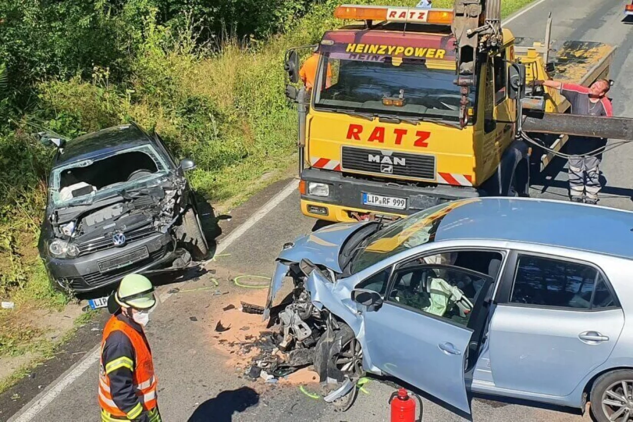 Die beiden Fahrzeugführer hätten sich leicht verletzt. Allerdings habe die 75-jährige Beifahrerin des VW-Fahrers aufgrund einer Vorerkrankung und wegen der bei dem Verkehrsunfall erlittenen Verletzungen von der Feuerwehr aus dem Fahrzeug befreit werden müssen. Sie sei mit einem Rettungshubschrauber in eine Klinik geflogen worden.