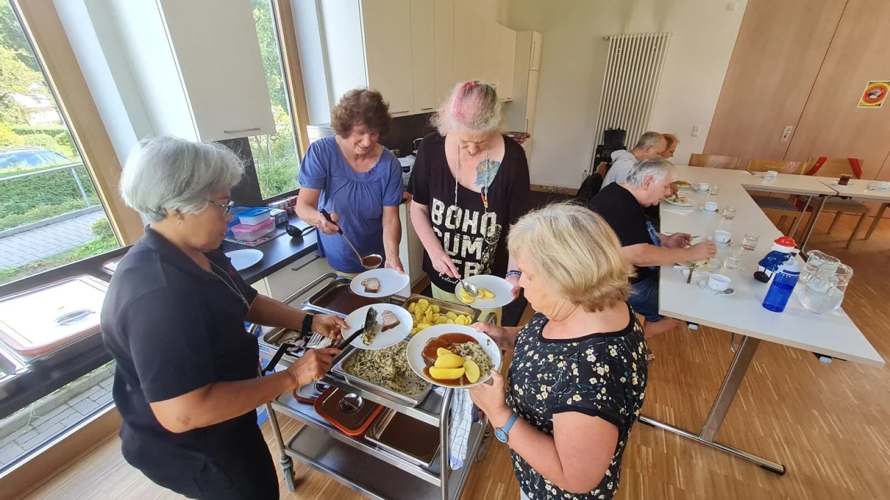 Derweil steht an jedem Mittwoch das Gemeindehaus der katholischen Kirche ab 12 Uhr für alle diejenigen offen, die Lust auf Gesellschaft haben: Der Mittagstisch, ins Leben gerufen von der Aktion Miteinander, die sich auch für Flüchtlinge engagiert, organisiert das Essen im Gemeindesaal. Bezahlen muss hier niemand, aber es muss auch niemand seine Bedürftigkeit nachweisen. „Unser Mittagstisch soll vor allem der Geselligkeit dienen. Zu uns kann jeder kommen“, betont Mitorganisatorin Claudia Theis.