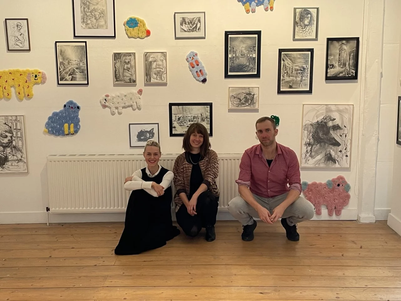 Die Zeichnungen und Gemälde von Eppler werden ergänzt von teils riesigen Stoffksulpturen der Künstlerin Theresa Rothe.