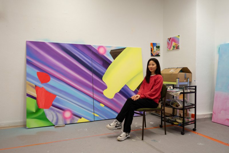 Die 34-Jährige überzeugte die Jury durch die faszinierende Verbindung von analoger Malerei und digitaler Kunst wie VR (virtual reality) und AR (augmented reality). In ihren Werken erforscht sie laut MItteilung des Landesverbandes die räumliche Wahrnehmung und die Immersivität von Bildräumen. Sie hinterfragt die Grenzen zwischen digitalen und analogen Medien und überträgt digitale Effekte in die materielle Welt der Malerei.
