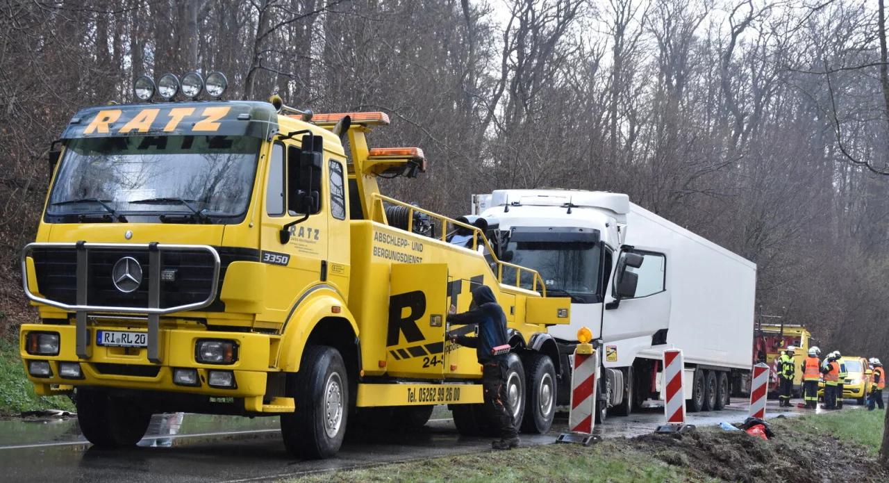 Der Lkw mit Auflieger war gegen 11.10 Uhr von der Straße abgekommen. Er streifte ein Gebüsch am rechten Straßenrand, überfuhr dann die Straße nach links, touchierte zwei Leitpfosten und prallte schließlich gegen einen Baum. Nach ersten Informationen war kein weiteres Fahrzeug an dem Unfall beteiligt. Ein Zeuge kümmerte sich um den Fahrer, bis die Einsatzkräfte eintrafen. Der 29-Jährige wurde vorsorglich zur Untersuchung mit dem Rettungswagen in ein Krankenhaus gebracht, traf jedoch Stunden später wieder am Unfallort ein.