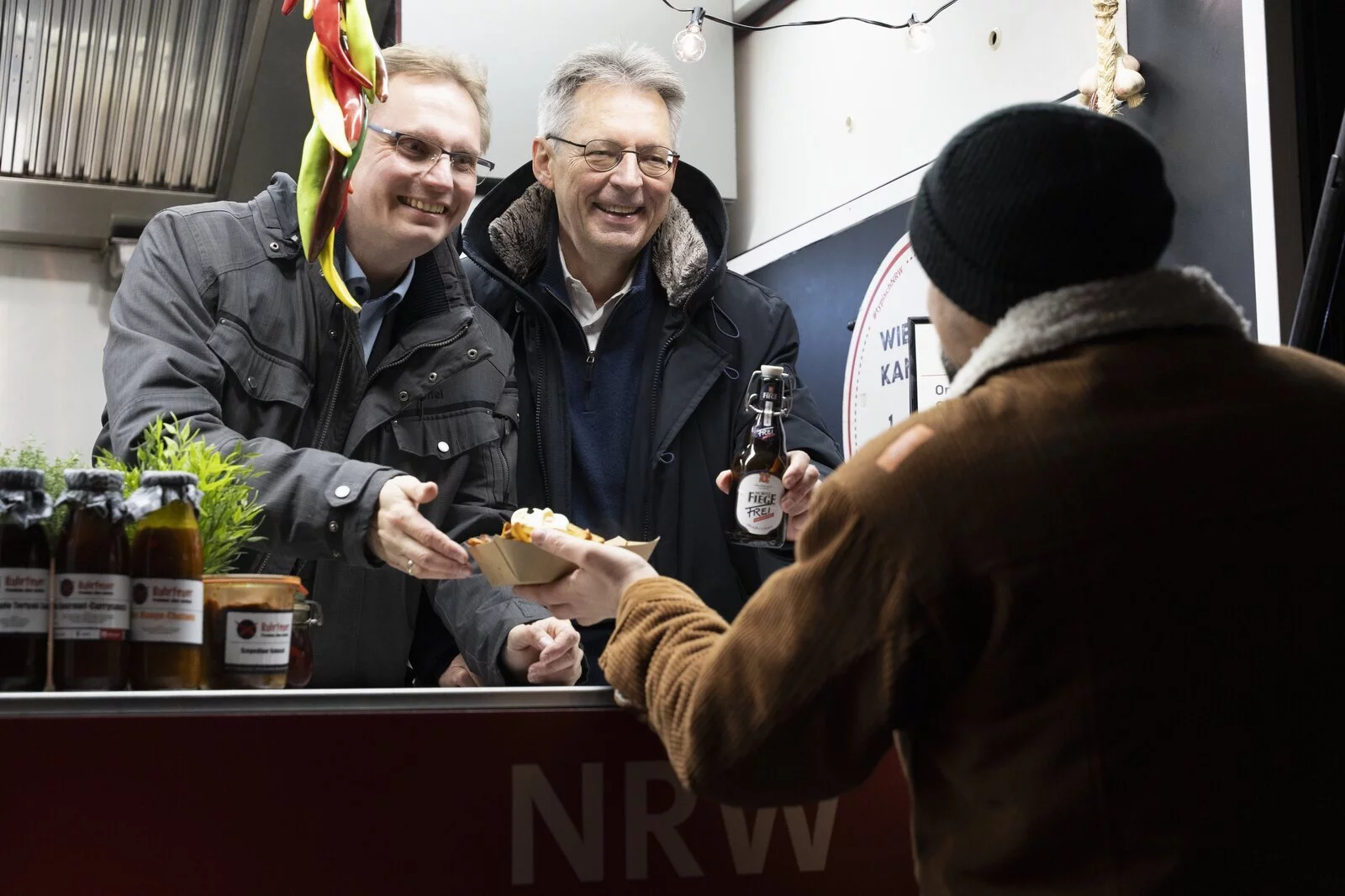 Rund 50 Zuhörer kamen laut Mitteilung der Sozialdemokraten zum Foodtruck der NRW-SPD, an dem neben lokalen Parteivertretern auch SPD-Landeschef Achim Post sowie der lippische Landtagsabgeordnete Dr. Dennis Maelzer das Gespräch suchten.