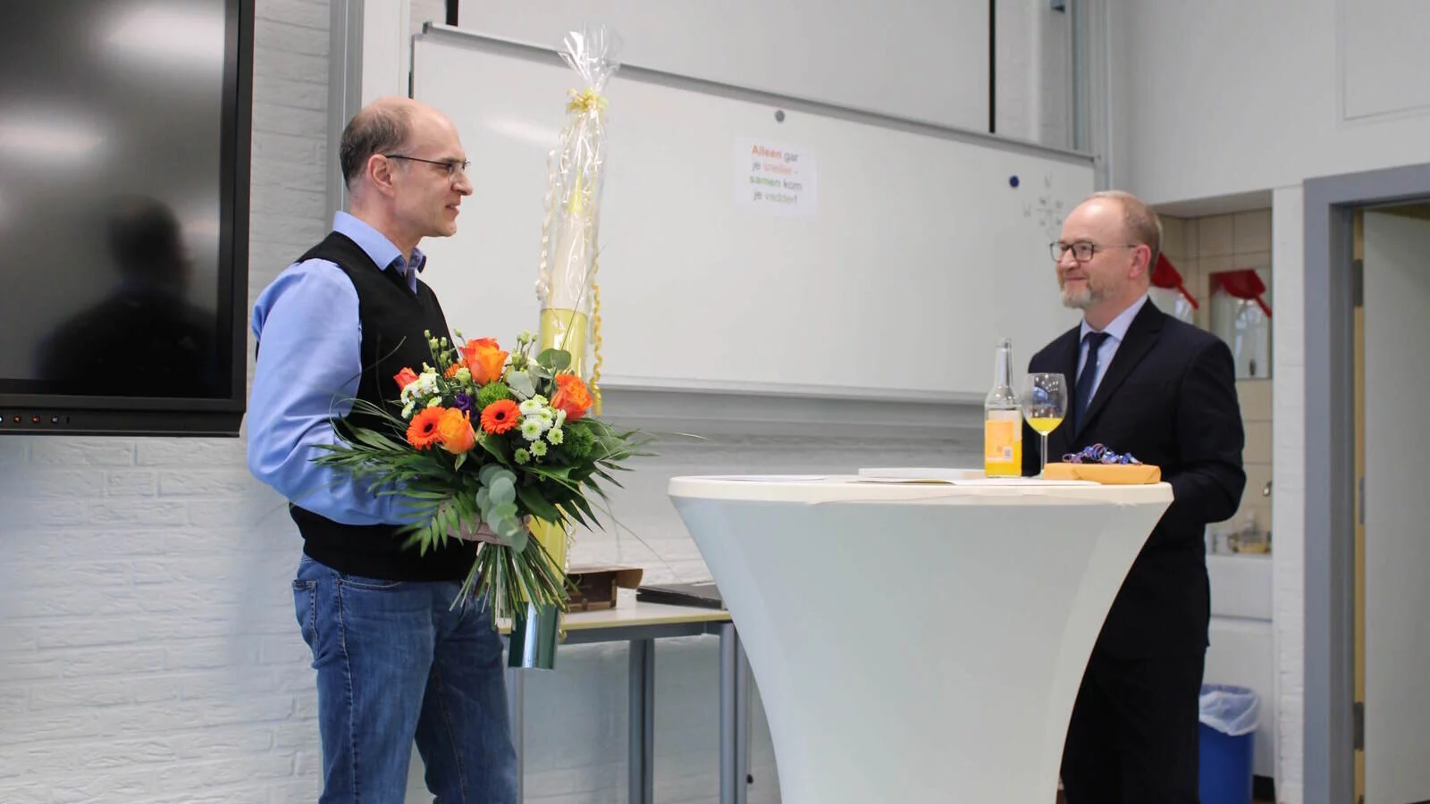 Der Schuldezernent für die Gymnasien des Kreises Höxter bei der Bezirksregierung Detmold LRSD Dr. Andreas Müller übergab Marko Harazim die Pensionsurkunde und würdigte seine Führung mit dem Bild eines Kapitäns am SGS. Auch Steinheims Bürgermeister Carsten Torke betonte die gute Zusammenarbeit zwischen der Stadt Steinheim und der Schulleitung.