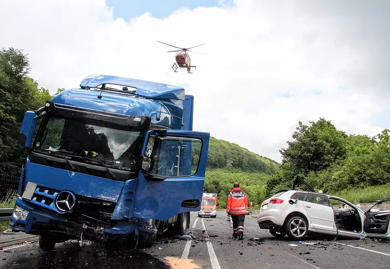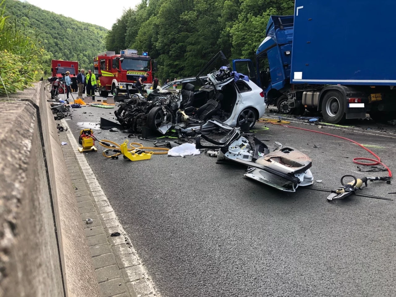 Fahrer und Beifahrer des Audi erlagen noch am Unfallort ihren schweren Verletzungen. Der 61-jährige Lkw-Fahrer musste schwerverletzt ins Krankenhaus gebracht werden. Ein Rettungshubschrauber war im Einsatz.