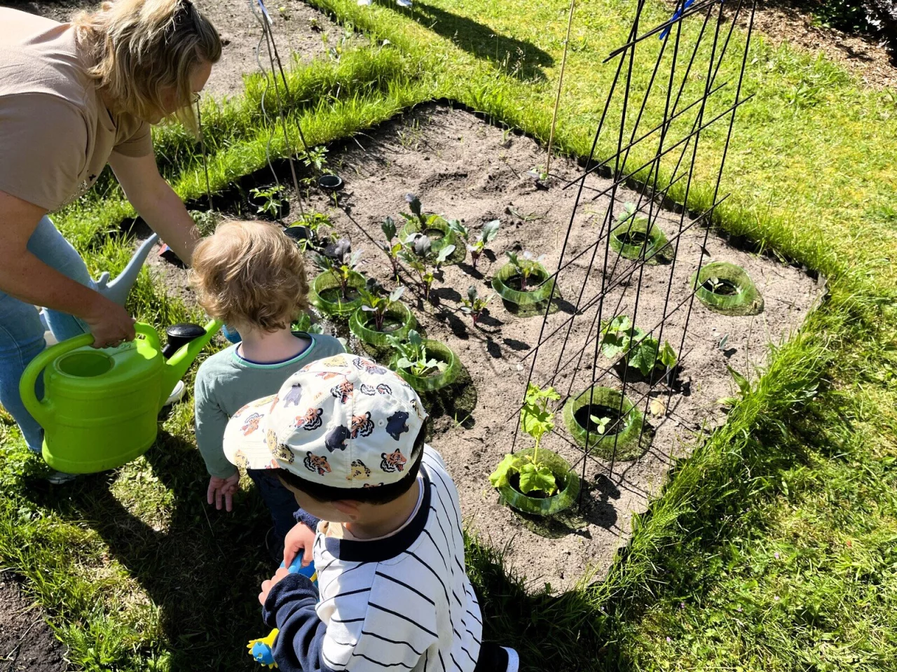 In der Kita gibt es spezielle Teams: eines für die Gartenpflege und eines für die Verarbeitung der Ernte. Ein Gieß-Plan im Eingangsbereich regelt die Bewässerung wochenweise durch die einzelnen Gruppen. Für Wochenenden und Feiertage gibt es einen zusätzlichen Gieß-Plan für die Eltern, um die Pflanzenversorgung sicherzustellen.