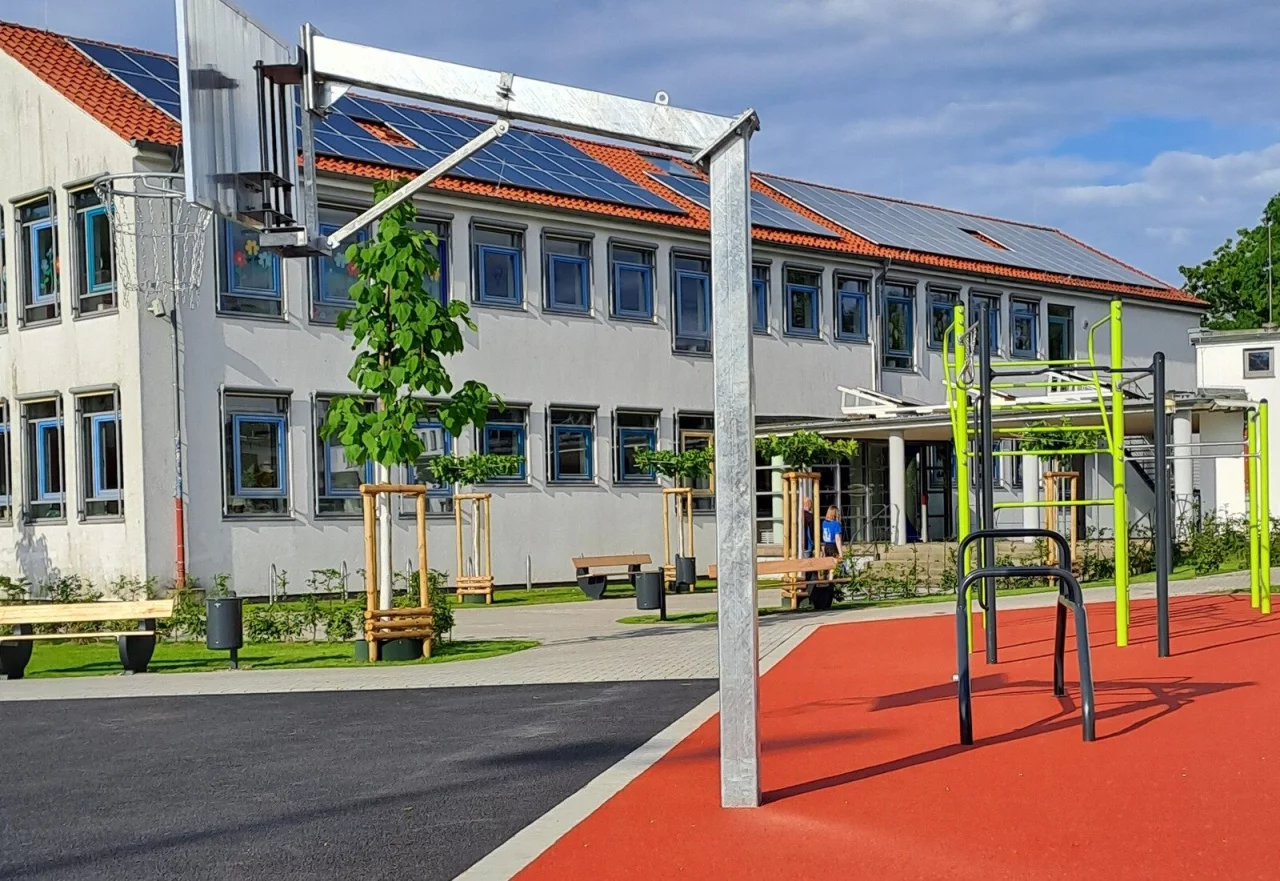 „Nicht zu übersehen sind die grünen Callisthenics-Geräte. Ähnlich wie klassische Turngeräte auf dem Spielplatz sind diese aber deutlich größer und ermöglichen Krafttraining mit dem eigenen Körpergewicht. Anregungen dafür gibt eine Wandtafel“, erklärt die Gemeinde weiter.