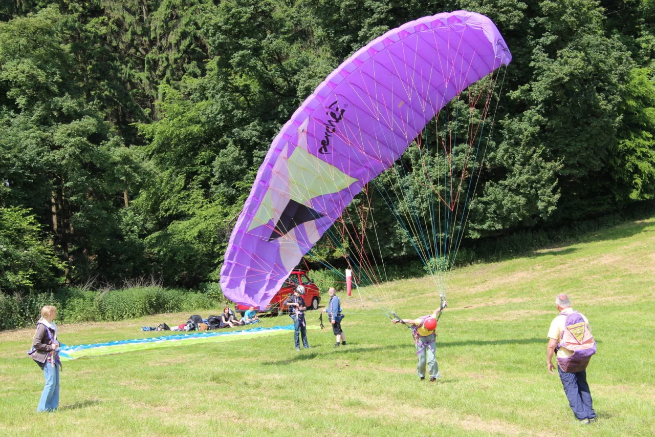 Die Kurse bietet der Borgholzhausener Rechtsanwalt Udo Wilhelm über seine Flugschule „High School“ an. Wer einen zweitägigen Schnupperkursus für 165 Euro bucht, kann sicher sein, spätestens am zweiten Tag mit seinem Schirm in die Luft zu gehen. Dann nämlich geht es auf das steilere Stück des Hangs.