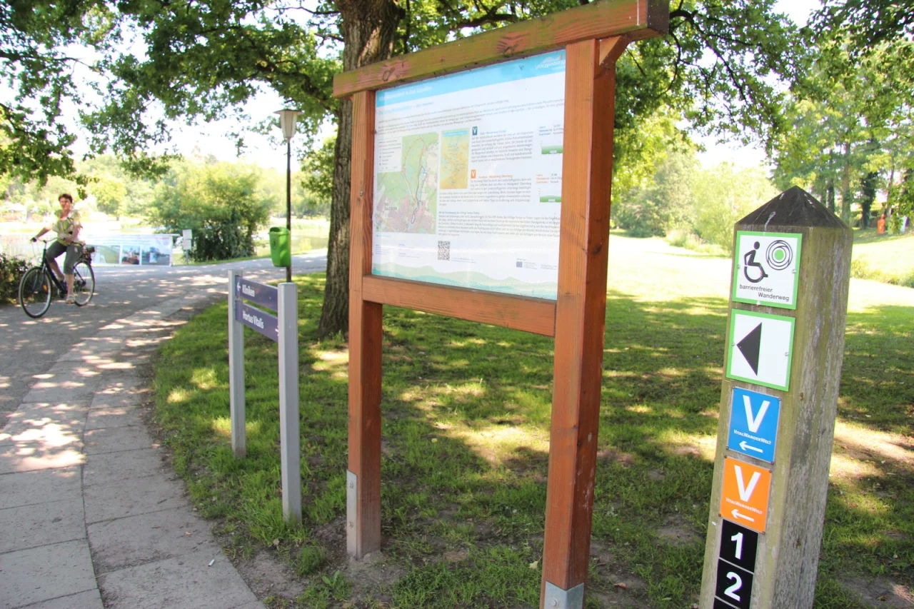 An vielen Punkten der Route Richtung Obernberg locken weite Aussichten ins lippische Bergland. Eine ganze Zeit lang geht es zudem am Golfplatz am Schwaghof entlang, der jüngst zu den zehn besten Anlagen seiner Art in Deutschland gekürt worden ist. Sicher auch, weil der Golfplatz sehr idyllisch liegt. Nach dem Abstieg durch den Wald geht es durch das reizvolle Salzetal und den Landschaftsgarten zum Kurparksee zurück. Gekennzeichnet ist die Route mit einem orangefarbenen „V“. Am Ausgangspunkt gibt es zudem eine Karte.