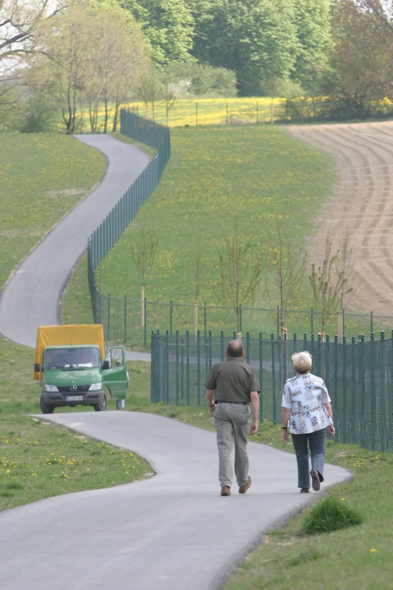 Direkt am Museumsparkplatz geht es los mit einer kurzen Etappe durch ein naturbelassenes Wäldchen, bevor ein bequemer Asphaltweg den restlichen Rundgang um das 90 Hektar große Gelände ebnet. Dabei kann der neugierige Spaziergänger auch ein paar Blicke auf die ein oder andere Sehenswürdigkeit des Museums riskieren. Ob die historische Tankstelle oder Westfälische Kaltblüter beim Grasen, am Wegesrand lässt sich so allerhand entdecken.