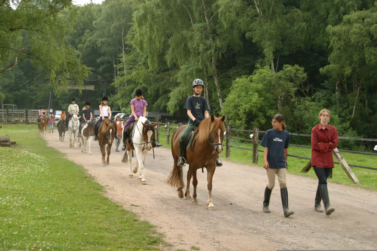 Gerade an schönen Wochenenden sind auch auswärtige Auto-Kennzeichen keine Seltenheit am Asenberg. Für viele Ausflügler ist das Ponyführen der Grund für die teils lange Anfahrt. Für zehn Euro die halbe Stunde kann sich der Nachwuchs auf den Sattel schwingen – oder bei fehlender Körpergröße heben lassen. Anschließend geht es mit Mama, Papa, Oma oder Opa am Zügel auf einen kleinen Rundweg. Wer sich das Führen nicht zutraut, kann auch eines der Silber-Ranch-Kinder um Hilfe bitten. Aber keine Angst: Am Durchbrennen sind Kajan, Edgar, Hugo und Co. weniger interessiert. Eher lockt das saftige Gras am Wegesrand...