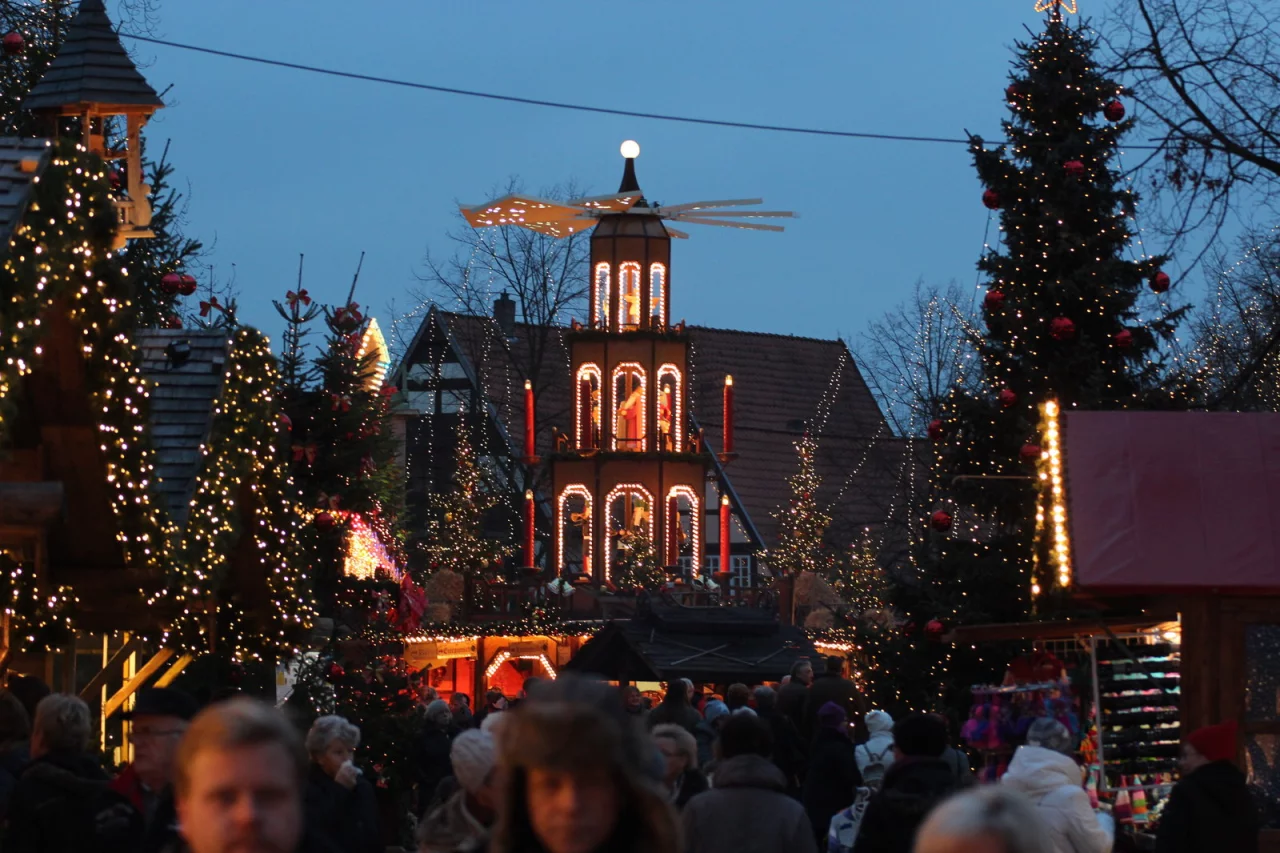 Wenn am kommenden Mittwoch, 25. November, der „Weihnachtstraum“ der Werbegemeinschaft seine Pforten öffnet, wird das überdimensionale Bauwerk wieder Tausende Bewunderer aus Nah und Fern anlocken. Zwölf Meter hoch und mit original handgeschnitzten XXL-Figuren aus dem Erzgebirge bildet die Weihnachtspyramide auf dem Salzhof im wahrsten Sinn des Wortes einen Höhepunkt des bis zum 30. Dezember währenden Marktes. Nicht zu vergessen: Direkt zu den Füßen befindet sich einer der vielen Stände, der mit seinem wärmenden und teilweise hochprozentigen Angebot für gute Stimmung auch an kalten und schmuddeligen Tagen sorgt.