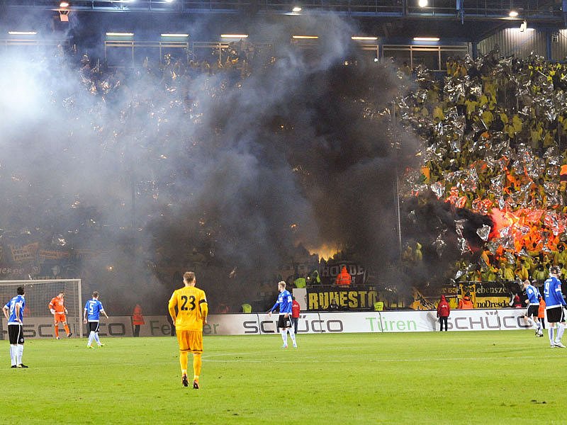 Im Vorfeld der Partie war es zudem zu Ausschreitungen außerhalb des Stadions gekommen. Die Aufarbeitung der Ereignisse laufe noch, teilte der Club mit. "Sobald im Zusammenhang mit unserem Spiel in Bielefeld Täter identifiziert worden sind, wird die Sportgemeinschaft gegen diese Personen vorgehen, Stadionverbote aussprechen und mögliche zivilrechtliche Schritte einleiten", sagte der Dynamo-Aufsichtsratschef Thomas Blümel.
