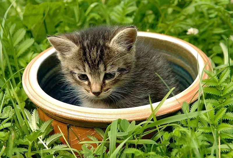 Als der Mann sich den Korb näher ansah, stellte er fest, dass sich darin zwei kleine Kätzchen befanden. Diese hatten offensichtlich erhebliche Schwierigkeiten, durch die Folie nach Frischluft zu schnappen.