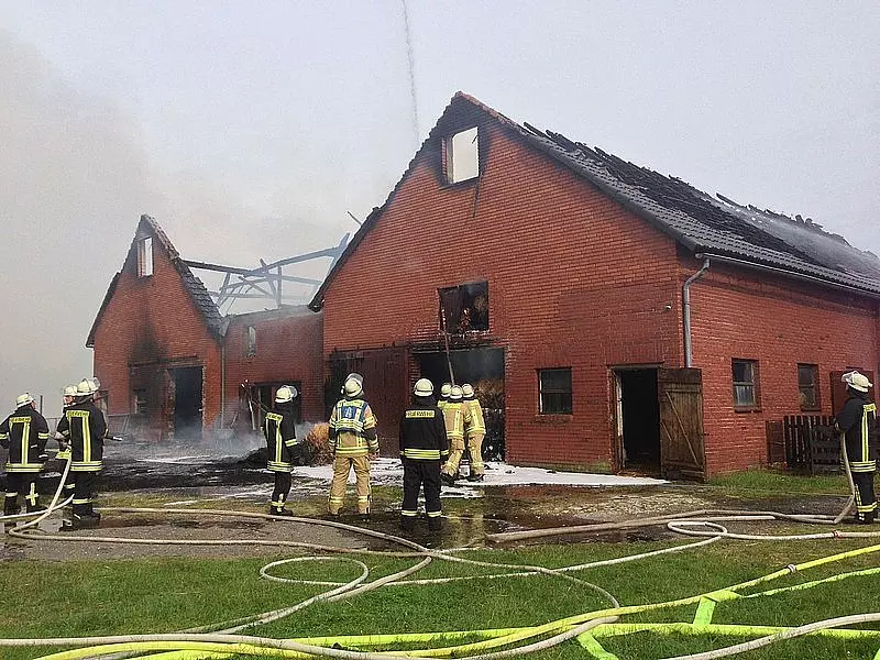 "Die Rauchsäule war bereits aus dem sechs Kilometer entfernten Delbrück zu sehen", erklärte Vizewehrführer Lothar Mühlbrandt. Mit einer Riegelstellung verhinderten die Feuerwehrleute ein Übergreifen der Flammen auf das benachbarte Wohnhaus. Die Dachstühle und die Remise wurden durch die Flammen komplett zerstört.
