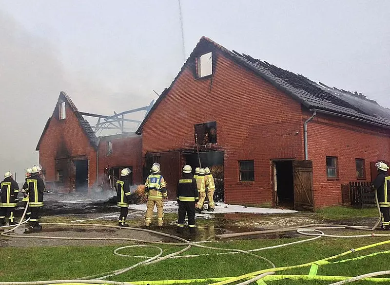 "Die Rauchsäule war bereits aus dem sechs Kilometer entfernten Delbrück zu sehen", erklärte Vizewehrführer Lothar Mühlbrandt. Mit einer Riegelstellung verhinderten die Feuerwehrleute ein Übergreifen der Flammen auf das benachbarte Wohnhaus. Die Dachstühle und die Remise wurden durch die Flammen komplett zerstört.