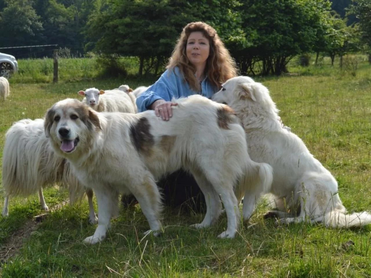 Humpert hat zwei Hirtenhunde gekauft, nachdem 2010 ein Luchs zehn junge Lämmer aus ihrem Bestand gerissen hatte. Auch Kolkraben seien für die Lämmer eine Bedrohung. Hirtenhunde würden diese Vögel vertreiben, und der Wolf werde sich vor ihnen ebenfalls in Acht nehmen, hofft die Vorsitzende des NRW-Schafzüchterverbandes und spricht stolz von ihrem "Pilotprojekt". An einem Zaun hat sie mehrere Warnschilder wegen der Hirtenhunde angebracht.