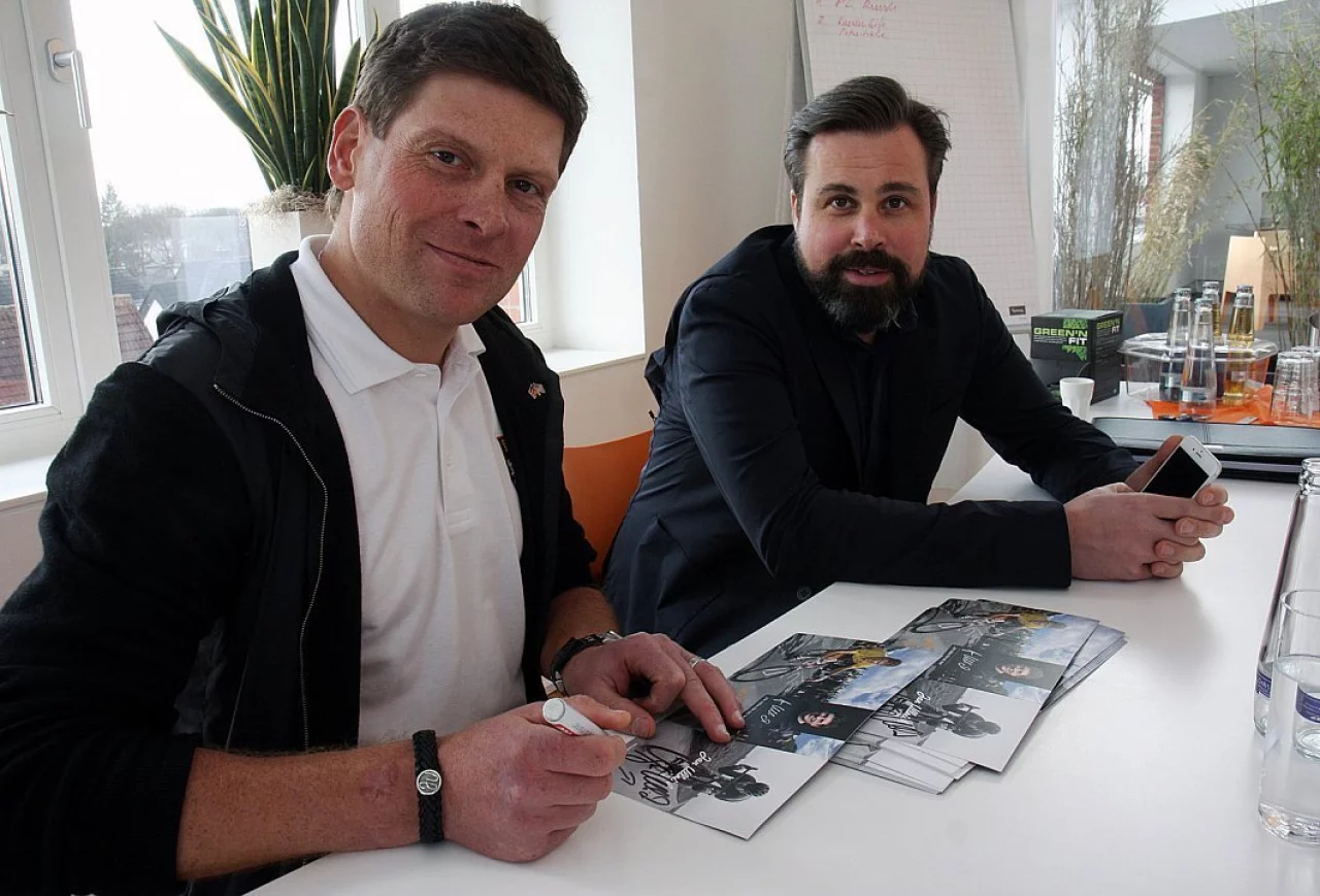 Als Team positionieren sich die beiden in Gütersloh. Jan Ullrich war dort, geschäftlich. Ternes: "Es gibt Anfragen von Veranstaltern und Firmen, dazu von Fernsehsendern wie Sky oder ZDF, natürlich Printmedien. Das alles müssen wir koordinieren, entscheiden, was wir wann wo machen."
