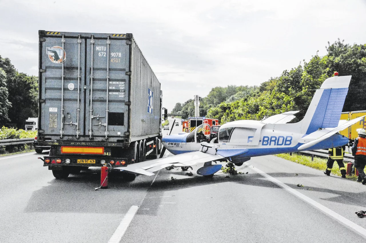 In Höhe des Parkplatzes Marburg setzte er zur Landung auf dem rechten Fahr- sowie dem Standstreifen an, berührte mit den Flügeln einige Sträucher. Der Lkw-Fahrer aus Berlin konnte auf der mittleren Fahrspur nicht mehr ausweichen und berührte mit seiner Stoßstange die rechte Flügelspitze des Kleinflugzeuges. Das drehte sich dann um die eigene Achse, der linke Flügel verkantete sich unter den Unterfahrschutz am Heck des Aufliegers.