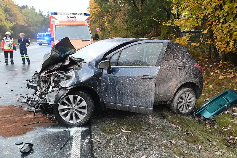 Beim Einscheren kam der Wagen der Fahrerin ins Schleudern und geriet in den Gegenverkehr. Frontal prallte das Fahrzeug mit der rechten Seite in einen entgegenkommenden Opel, der aus Richtung Schlangen kam. Der Mazda wurde beim Aufprall in zwei Teile gerissen und landete im Straßengraben. Das Auto der 51-jährigen Opel-Fahrerin blieb mit starkem Frontalschaden am Straßenrand stehen.