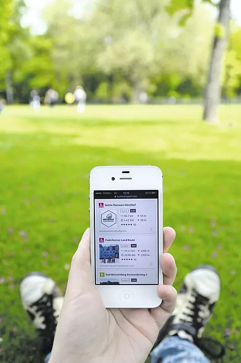 Das Programm "Mein Teuto", für das mobile Telefon, zeigt Wanderrouten rund um den Teutoburger Wald an.