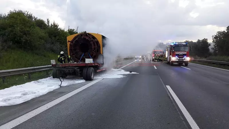 Die Bergung des nicht mehr fahrbereiten Anhängers dauert noch an. Der Rückstau betrug zeitweise eine Länge von fünf Kilometer. Der Sachschaden beläuft sich auf mehrere tausend Euro. Die Ursache des Brands ist noch unklar.