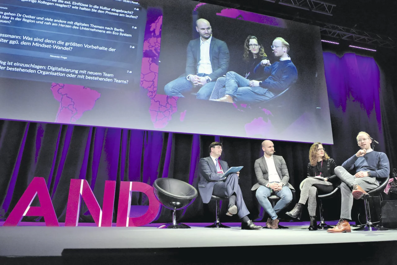 Im Bielefelder Ringlokschuppen treffen namhafte Familienunternehmer auf prominente Start-up-Gründer wie Xing-Erfinder Lars Hinrichs und internationale Digital-Experten. 250 Gäste sind zur ersten Konferenz „Hinterland of Things" der Founders Foundation geladen. Bei der Konferenz geht es sehr locker zu. Das Publikum darf den Talkgästen Fragen per Smartphone schicken.