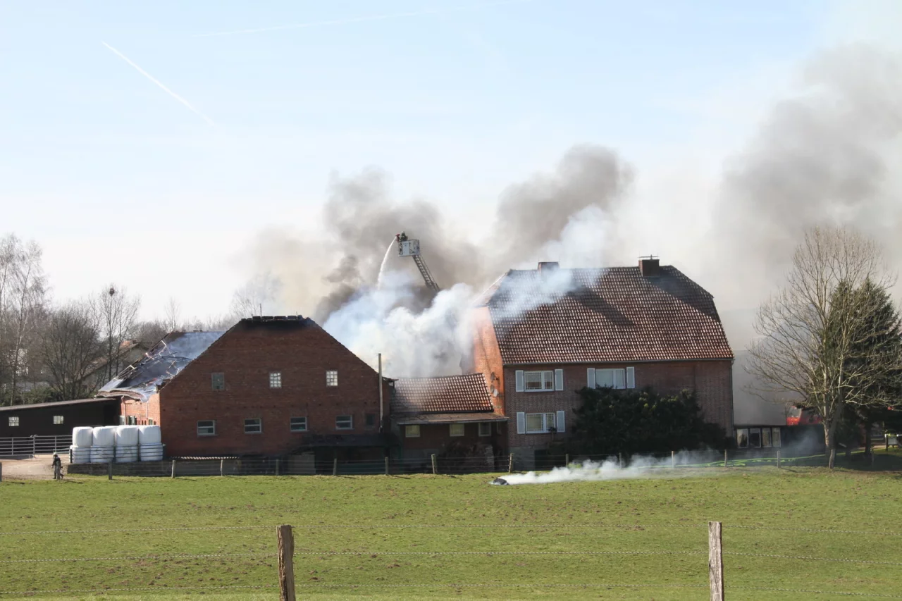 Marienmünster-Bredenborn. Ein Großbrand ist am Samstagnachmittag auf einem landwirtschaftlichen Gut in Bredenborn ausgebrochen. Sechs Menschen wurden dabei verletzt, aber weder Personen noch Tiere tödlich. Der Sachschaden beläuft sich auf rund 400.000 Euro. Verantwortlich für den Brand sind nach neuestem Stand der Ermittlungen Kinder und Jugendliche, teilt die Polizei mit.