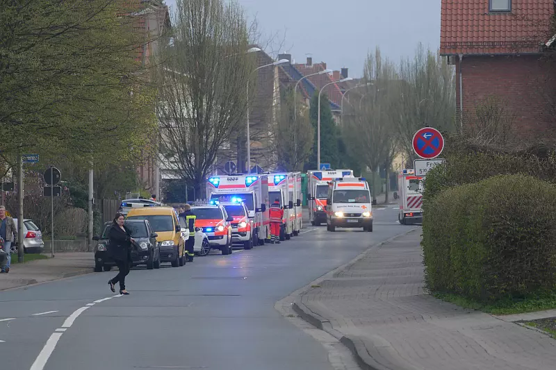 Um 19.56 Uhr ging ein Anruf auf der Polizeiwache in Stadthagen ein. „Die Hurensöhne in der Festhalle werden alle in die Luft fliegen", drohte der Anrufer nach Polizeiangaben dieses Mal. Da es sich um etwa 900 Personen handelte, die betreut werden mussten, rief die Leitstelle kurzerhand MANV (Massenanfall von Verletzten) aus. Rettungswagen, Streifenwagen und Feuerwehrfahrzeuge säumten die Seilerstraße sowie die Enzer Straße. Die Helfer mussten für den Einsatz ihre sogenannte Blaulichtparty am Abend unterbrechen. Da sich die Suche in der Festhalle hinzog, verlagerten die Veranstalter die Hochzeitsfeier ins Foyers der Kreissporthalle – begleitet und betreut von Feuerwehr sowie DRK.