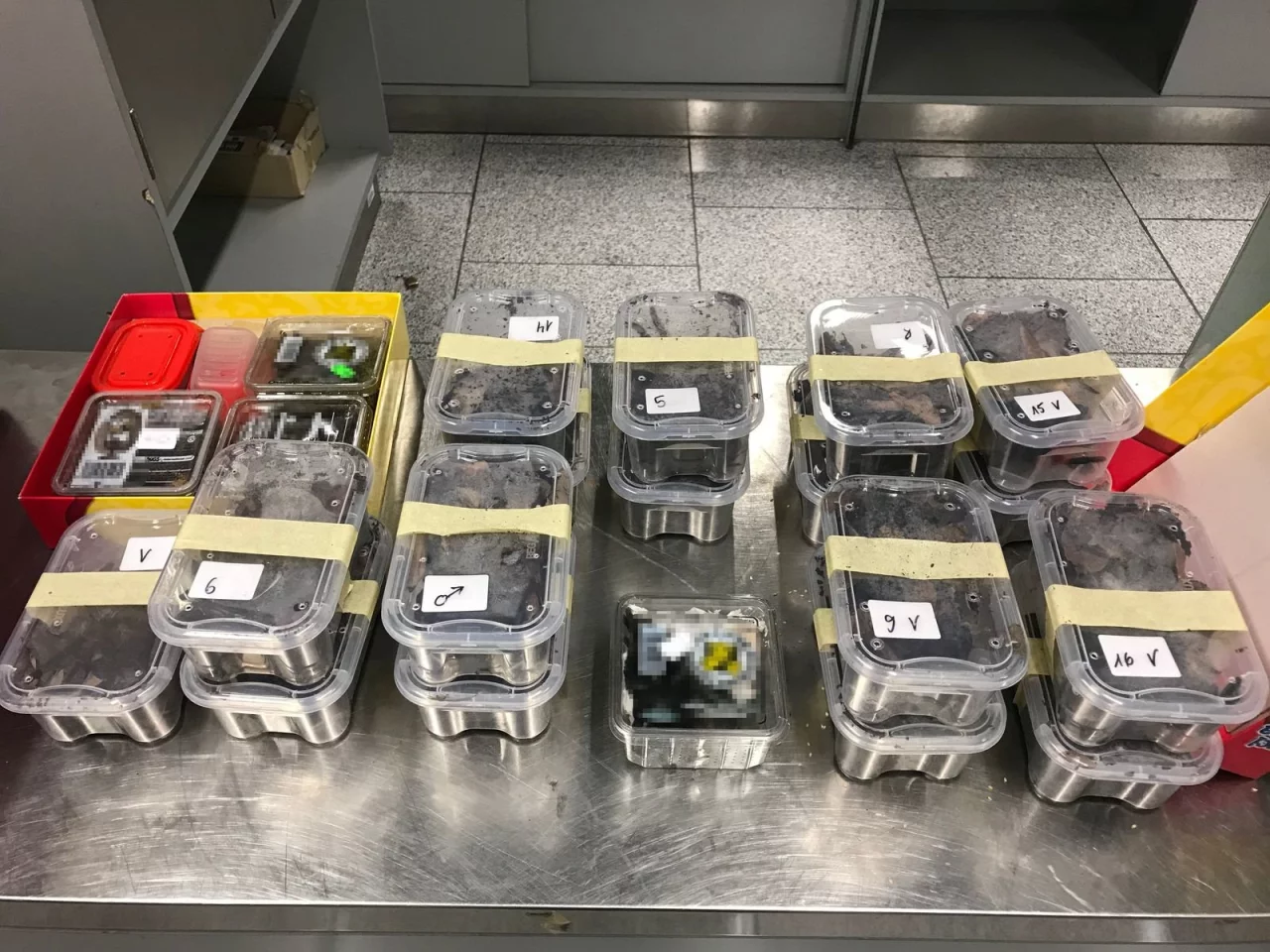 Der dann aufgetauchte Besitzer des Koffers sprach bei der Frage nach dem Inhalt zunächst nur von persönlichen Dingen, teilte der Zoll am Dienstag mit. Als dann Plastikbehälter mit den vielen Spinnen ans Licht kamen, erklärte der 48-jährige Essener dies damit, dass er Spinnen züchte und die Tiere zum Teil trächtig seien.